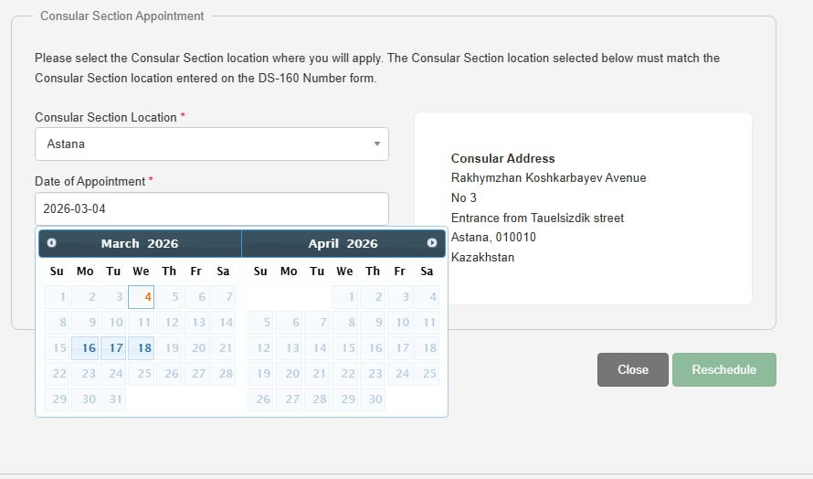 Мы не остановились на этом. Наша команда направила несколько дополнительных запросов в техническую поддержку консульства США, подробно описав ситуацию с ссылкой на правила от 05.09.2025 и настояли на предоставлении альтернативных дат в Астане.